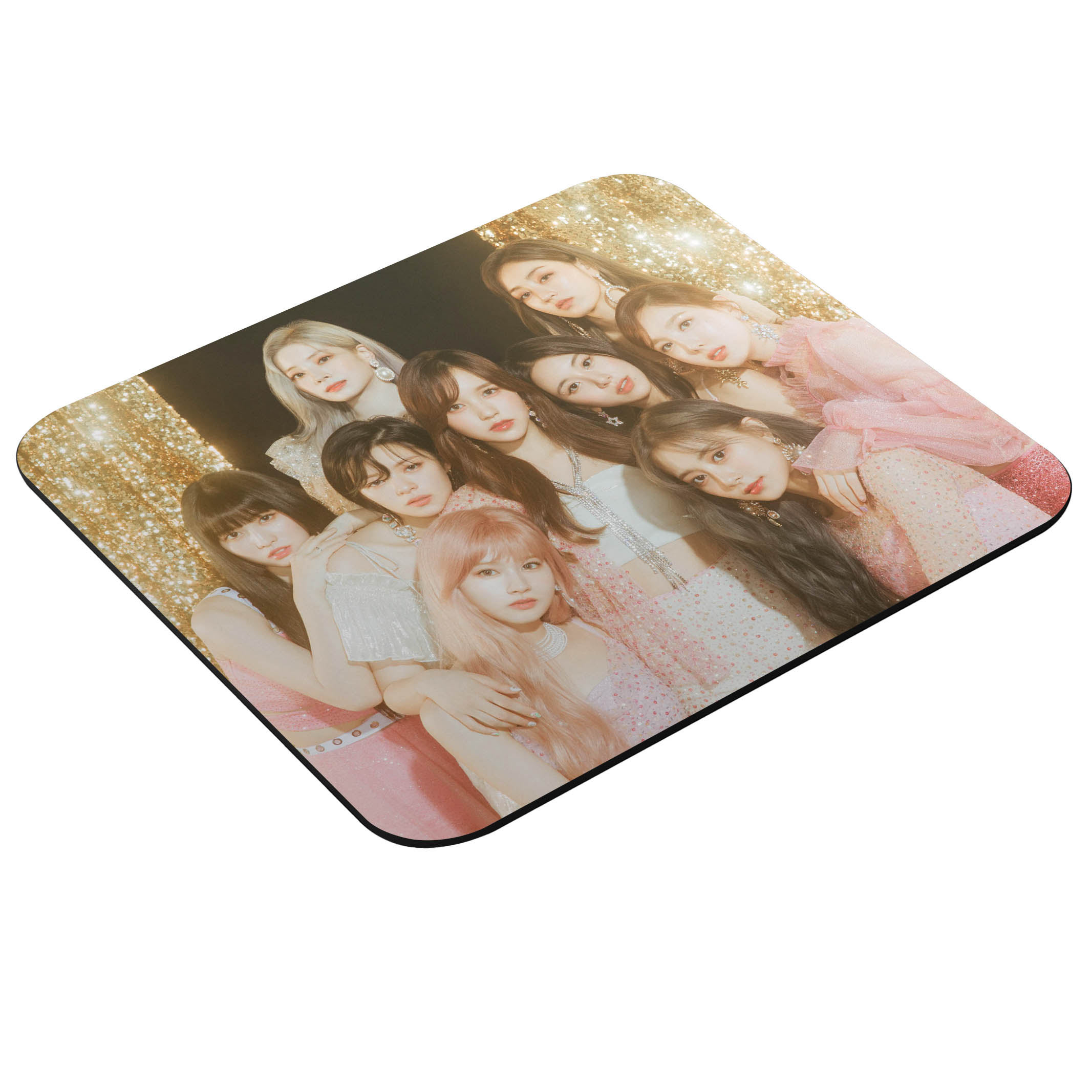 ¡Dale un toque brillante y colorido a tu escritorio con esta almohadilla para mouse inspirada en TWICE! Perfecta para cualquier ONCE, este pad refleja la alegría y carisma de Nayeon, Jeongyeon, Momo, Sana, Jihyo, Mina, Dahyun, Chaeyoung y Tzuyu.