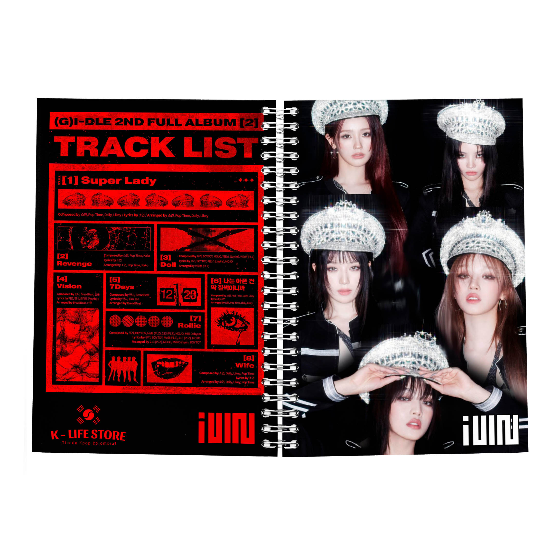 ¡Lleva la fuerza y estilo de (G)I-DLE a tus apuntes con este cuaderno argollado de diseño exclusivo! Perfecto para NEVERLAND, este cuaderno refleja el carisma y creatividad de Soyeon, Minnie, Miyeon, Yuqi y Shuhua.